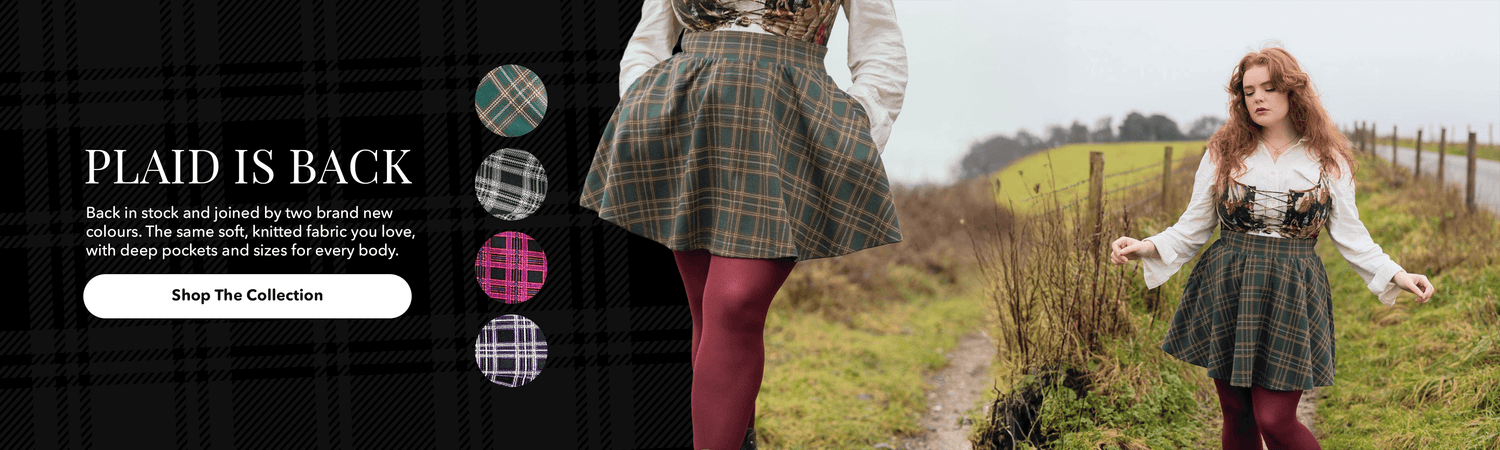 These skirts were made to match our tights. Try a bold colour clash with our 80 Deniers or keep it cool with Fishnets and chunky boots. Ethical, comfortable and practical, this is exactly how plaid should feel.