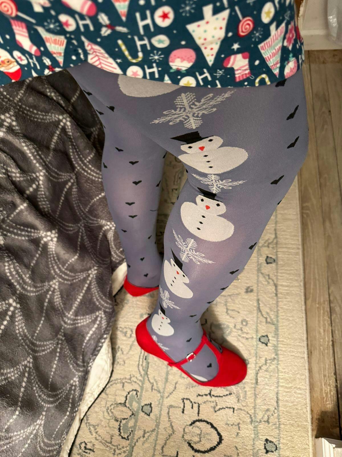 Get snuggly this Xmas with Warm Hugs - a super sweet snowman and snowflake pattern on a gray opaque base with black love hearts. These tights will keep you snuggly in the winter without worry of sweating thanks to breathable, moisture-wicking yarn. With 12 inches of multi-dimensional stretch for a great fit every time, these tights will last through all seasons thanks to perfected knitting techniques using aerated yarn for softness, breathability and moisture wicking properties