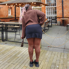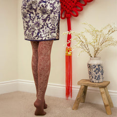 Soft power made beautiful, our Peonies tights are designed to celebrate femininity, confidence and quiet luxury, all wrapped up in a pair of tights you will want to wear again and again. Set on our Divine base, a soft warm brown that flatters and glows, these tights feature a stunning golden peony motif knitted directly into the fabric and running elegantly up the back of the legs.