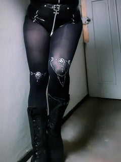 Calling all witches! The Coven tights are here for all your midnight rituals. A beautiful, silvery glitter pattern sits just above the knee, like a magical charm to ward off bad vibes.