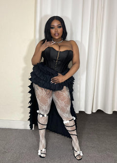 Bless my soul! This isn't your average fishnet. Look closer at Hot Patootie and you'll find a secret garden of intricate floral lace that’s full of surprises. It’s a whimsical pattern that adds a unique, detailed texture to any look, whether you’re pairing it with chunky boots or something more delicate.