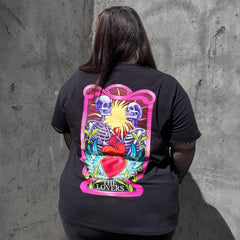 Big feelings. Clear choices. A recentring with your values and your authentic self. The Unisex Tarot Tee in The Lovers is all about connection, alignment and choosing what truly matters to you. From the front it is a clean, classic black tee. Turn around and it tells a story. Our artist's stunning interpretation of The Lovers card comes to life in bold, expressive colour, full of emotion, strength and intention.