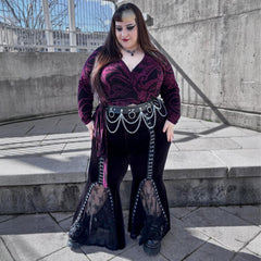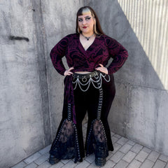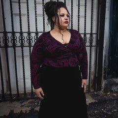 We put our bestselling wrap top in the Kraken's Embrace print and honestly, we're obsessed. Bold, flattering and dripping in alternative energy, the custom tentacle design coils across a black base in either deep Cherry. It draws the eye without ever shouting.