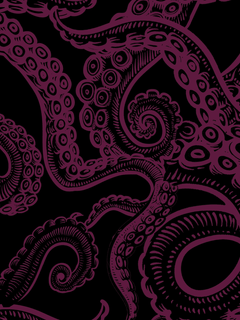 - 🍒 Deep cherry kraken tentacle design on a black base for moody impact